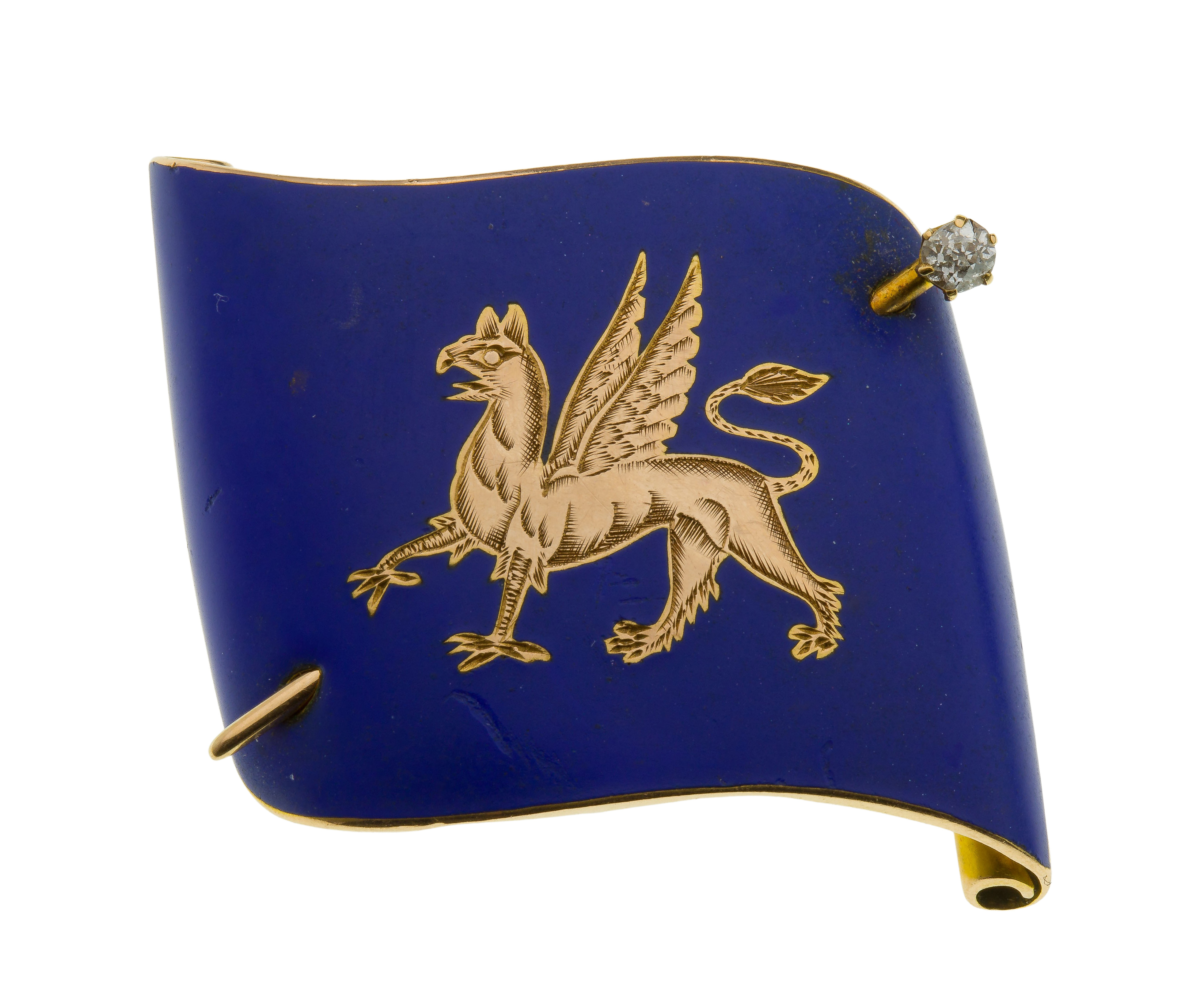 14k Yellow Gold, Enamel and Diamond Brooch