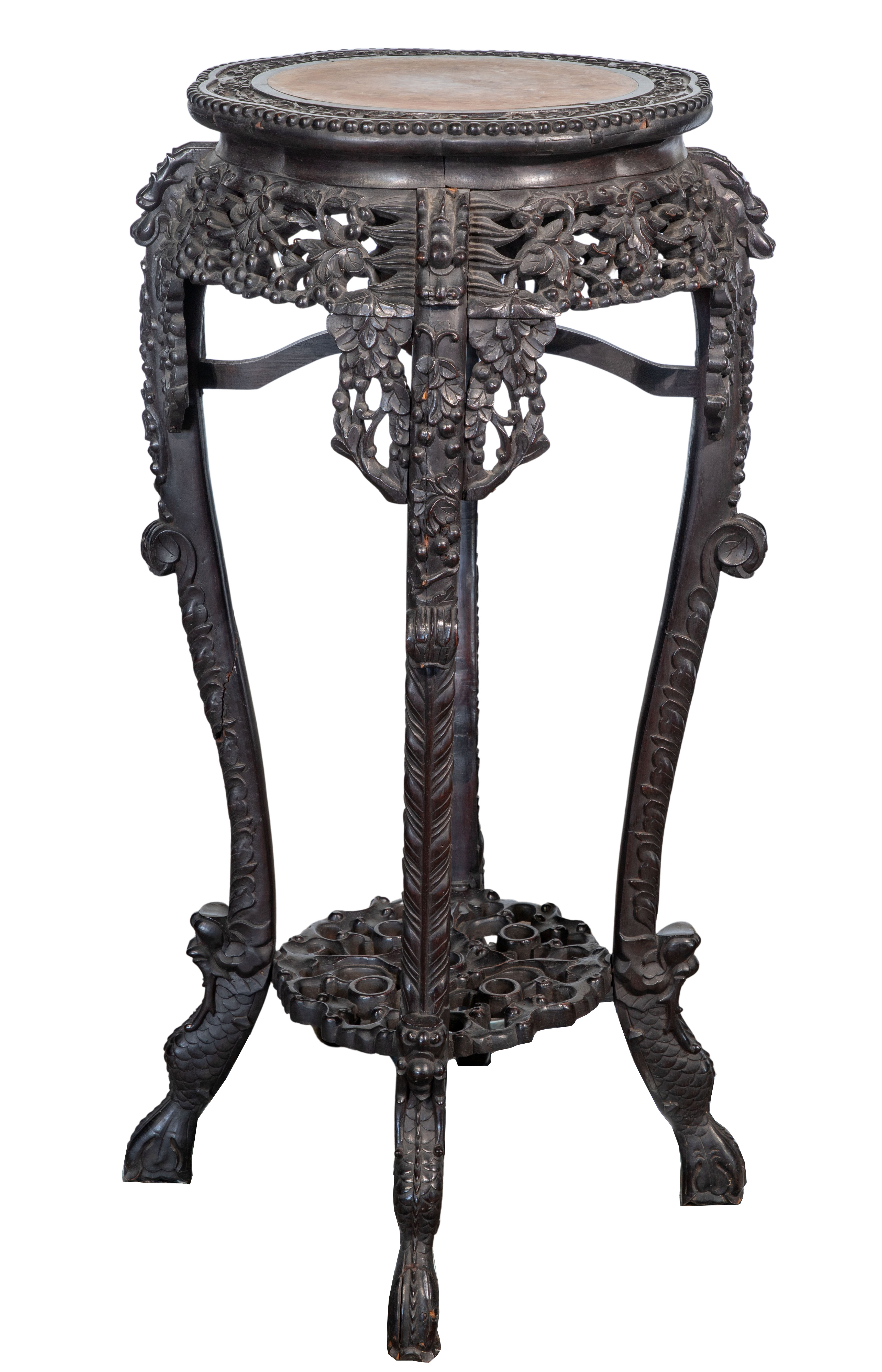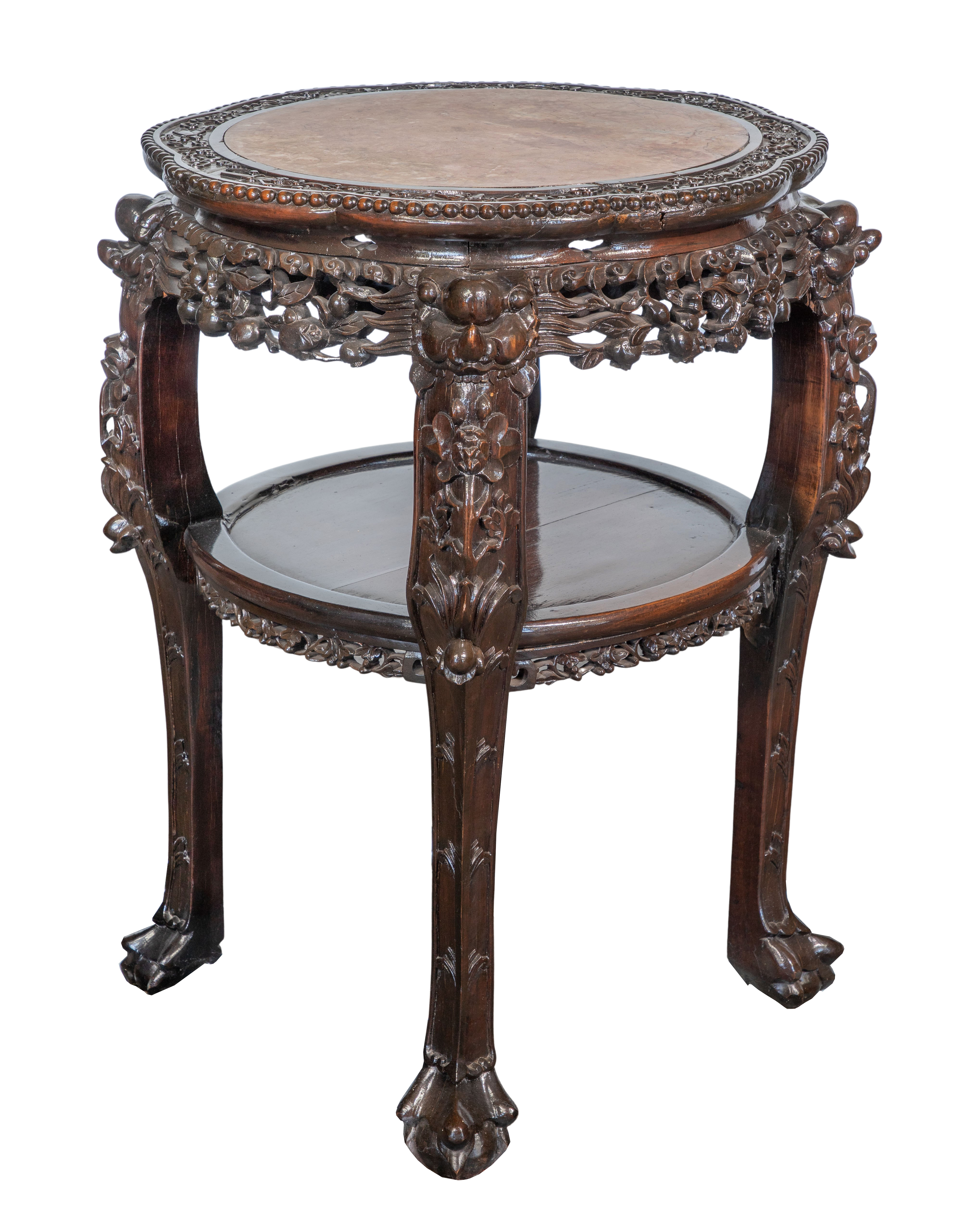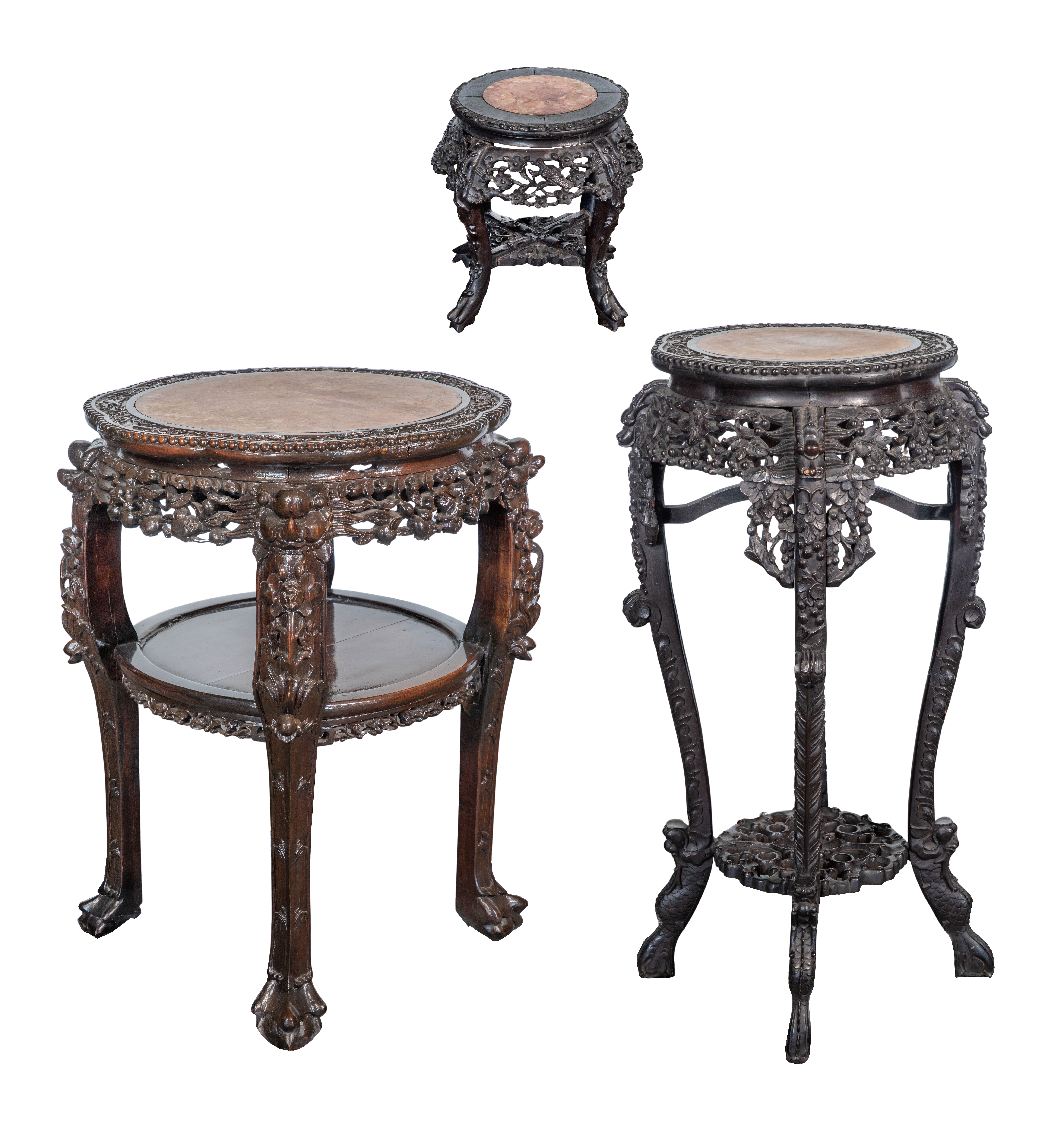 Chinese Rosewood and Marble Plant Stands