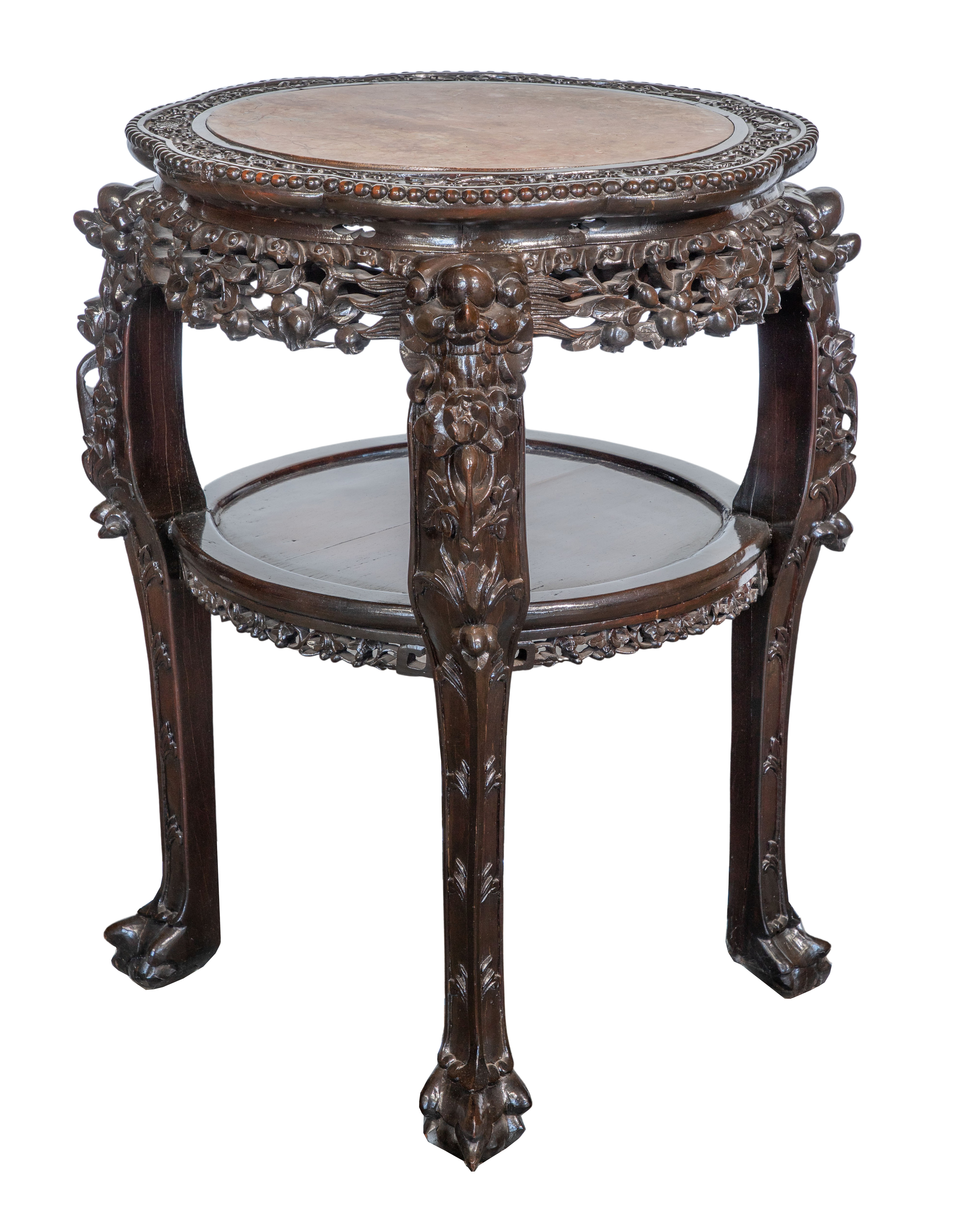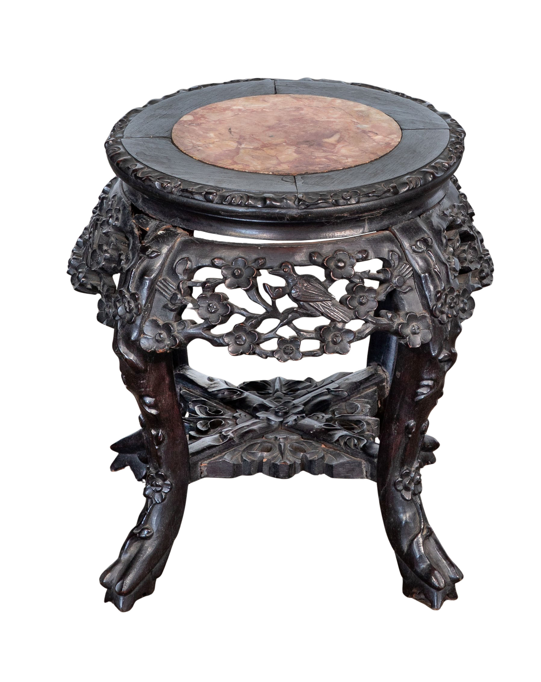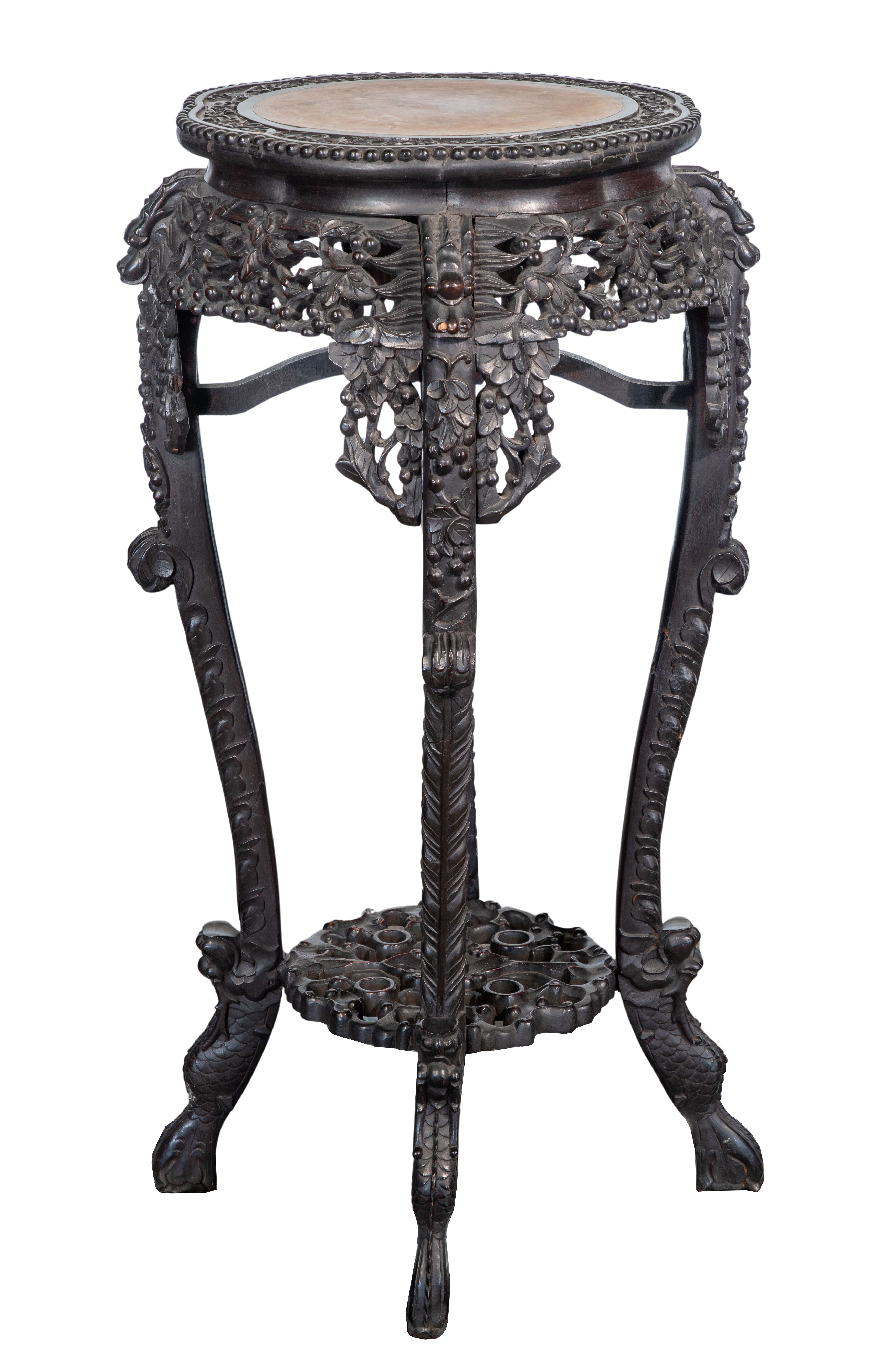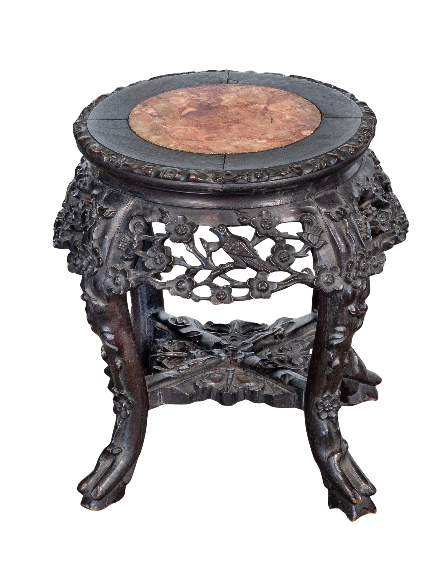 Chinese Rosewood and Marble Plant Stands