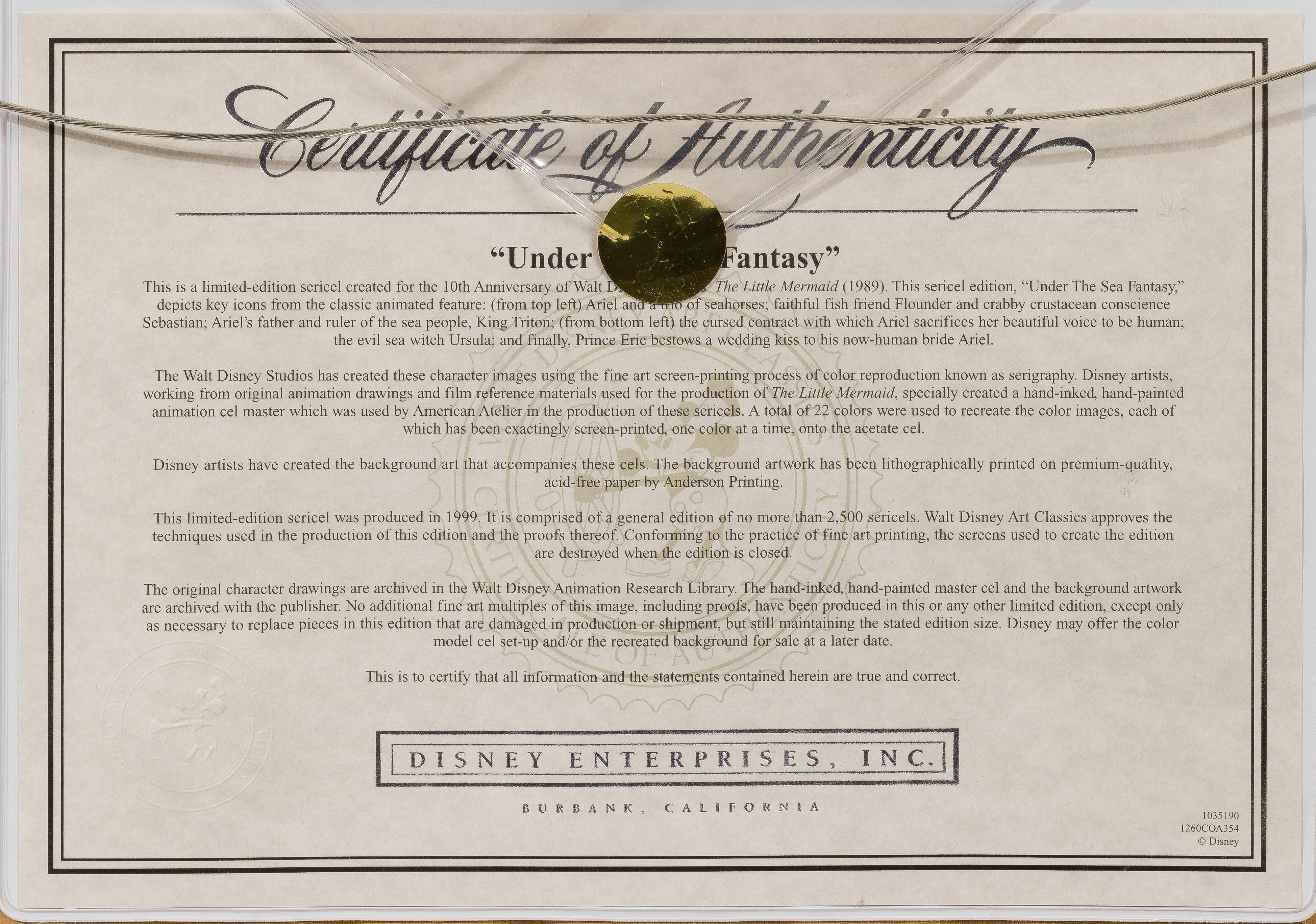 Disney 'The Little Mermaid' Television Production Cel and Sericel