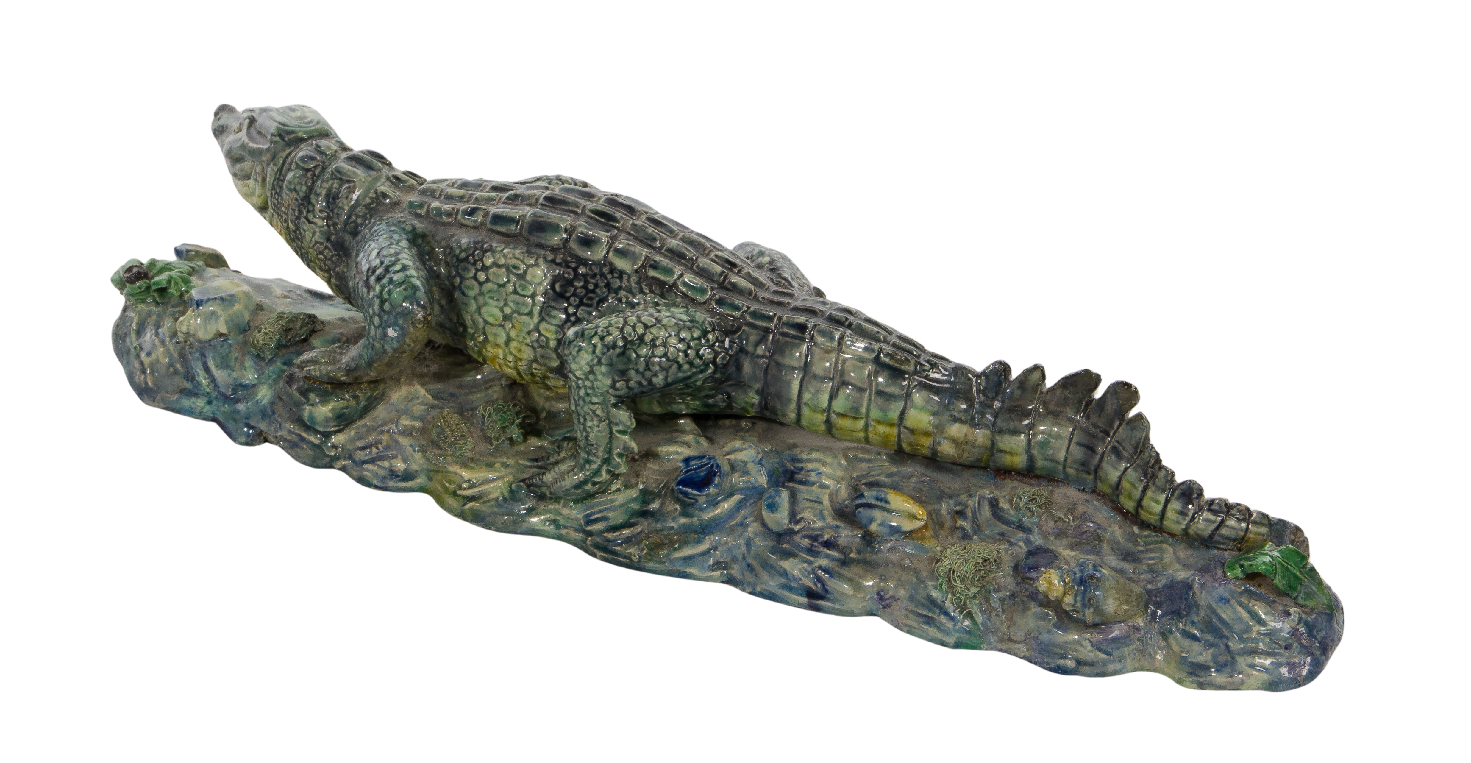 Majolica Alligator Figurine