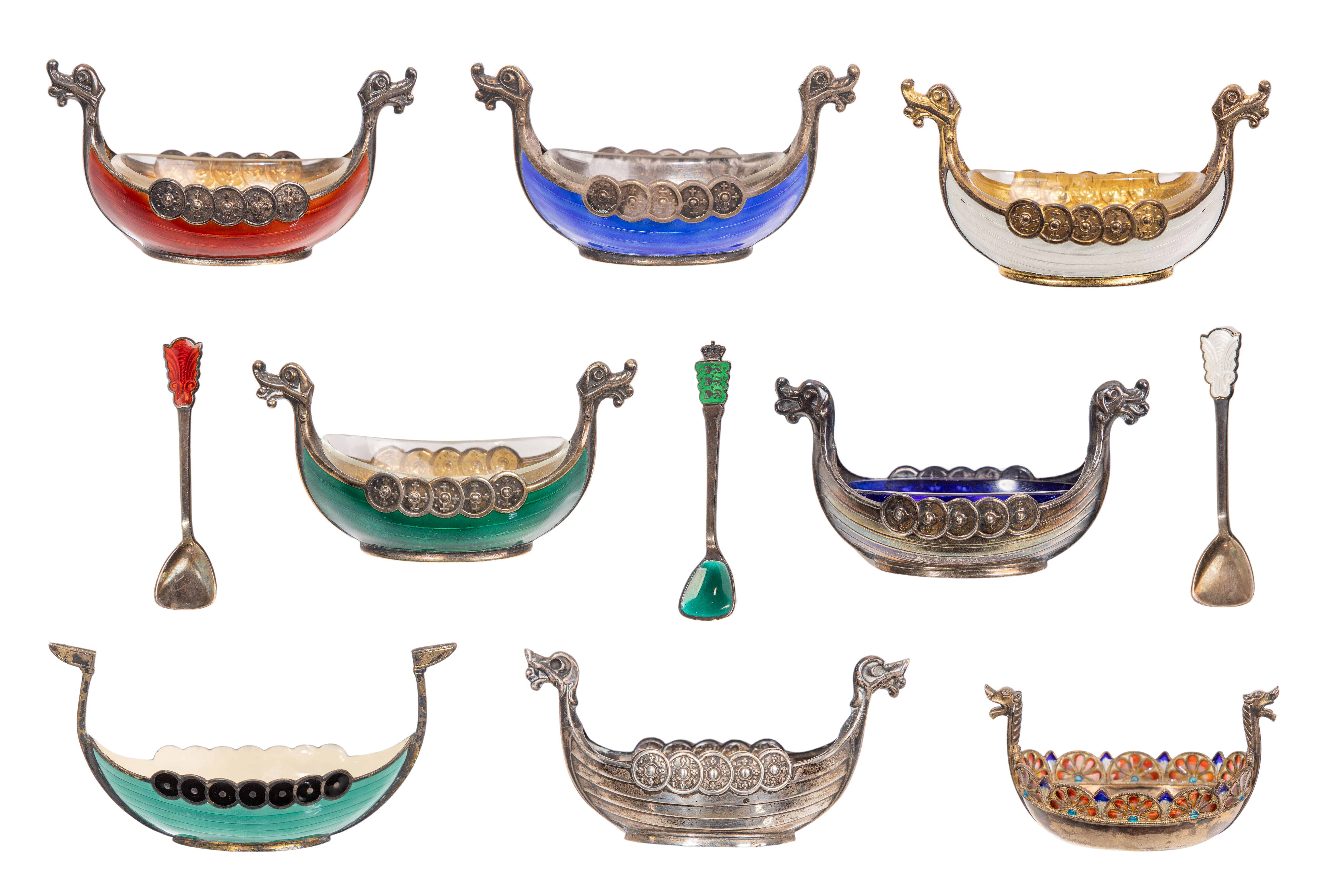 Norwegian Silver Viking Ship Salt Cellar Assortment